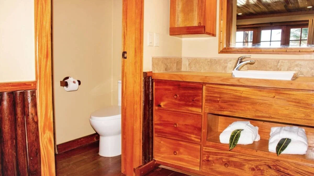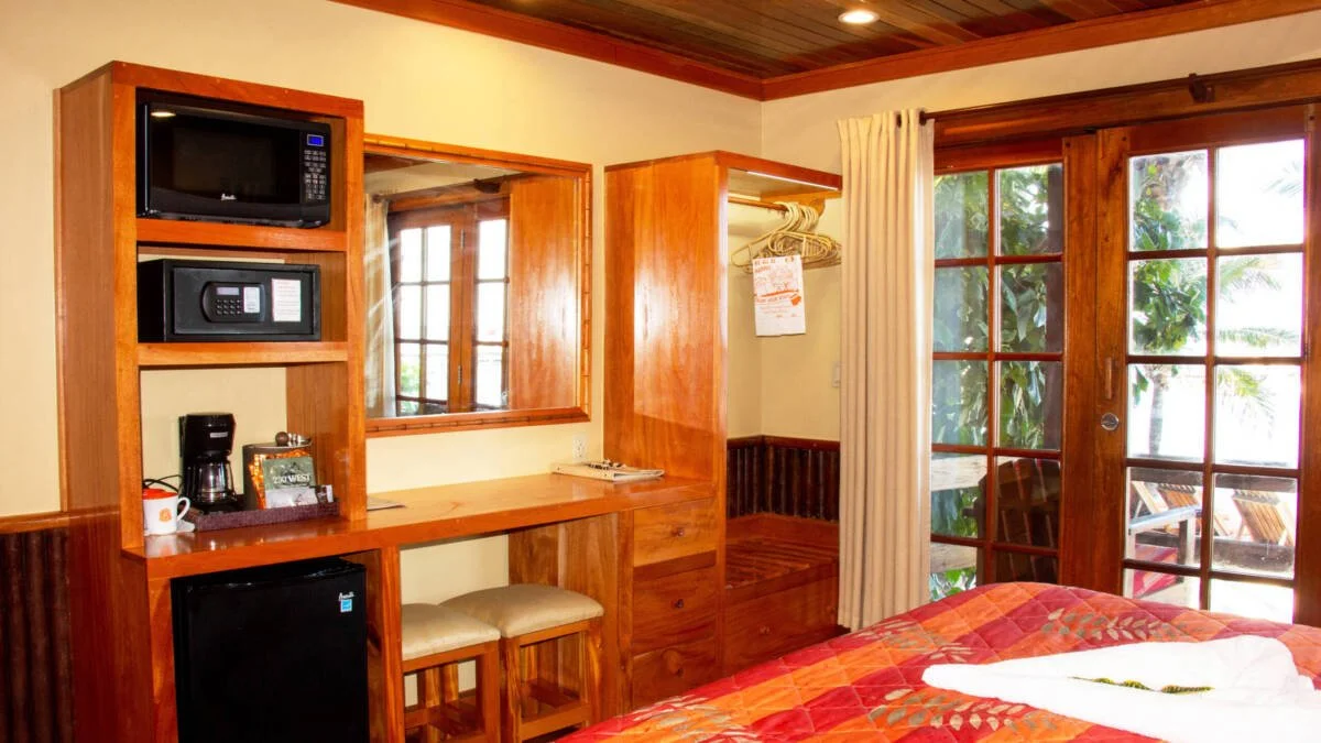 Located on the lower level of our Two Story Cabanas and separated by an open air breezeway these Beachfront rooms provide stunning views of the Caribbean Sea and the Belize Barrier Reef. Each room is appointed with Mahogany floors, locally handcrafted cabinetry, table and chairs for two, and French Doors opening onto your beachside veranda. Recently remodeled to include larger showers with a bench and new Vanity tops. Our Beachfront King units feature a king bed and sleep two.